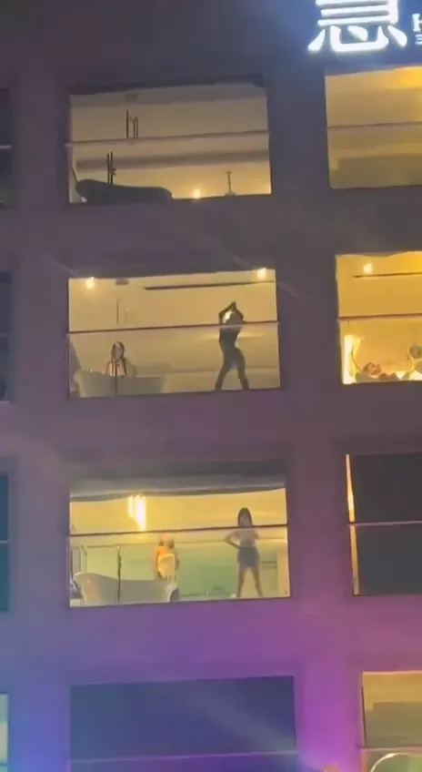 三亚海景冲浪民宿酒店,一场欢快的轰趴派对正在如火如荼地进行。欢声笑语中,大家尽情享受着这美好的时光,忽然,一位美女在酒店客房的落地窗前翩然起舞,性感的舞姿瞬间吸引了众人的目光。难道这又是一个新的惊喜套路吗?