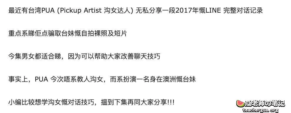 顶级PUA大师今日曝光了一份详细的记录,如何一步步骗取台妹的信任,到最后完全果体