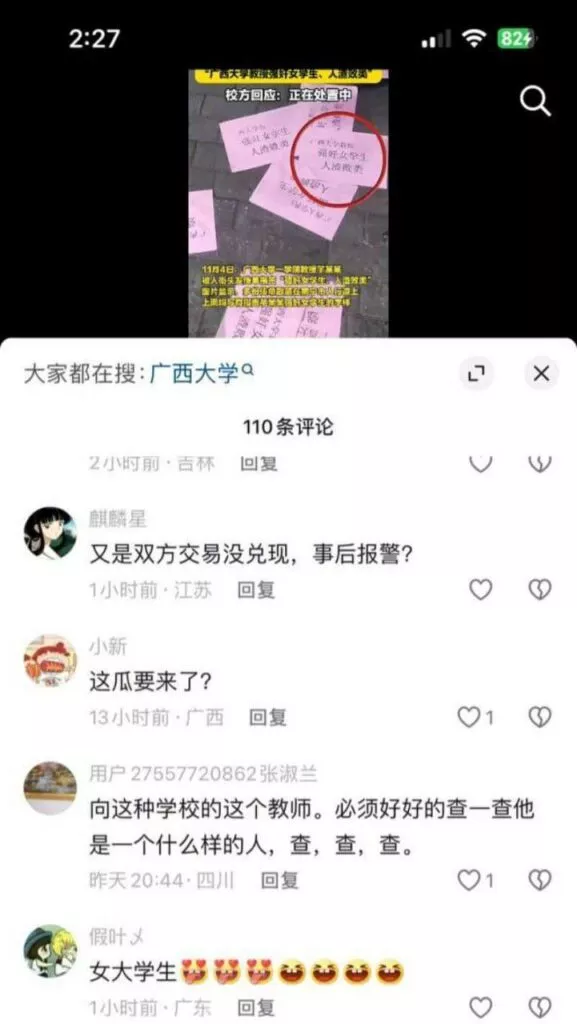 近日,广西大学校园内突现大量大字海报和传单,内容针对生物科学学院副院长芋来生,控诉其涉嫌猥亵学生。这些海报引起了学生们的广泛关注,许多学生纷纷在校园内发现并捡到这些宣传材料。