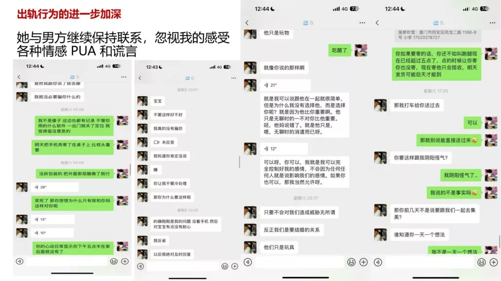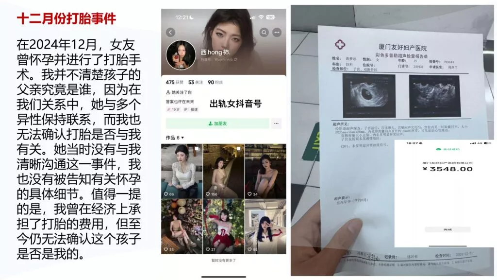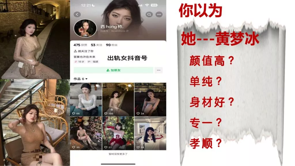 你能包养我吗?这句话出自厦门东海职业学院空乘专业的黄梦冰之口。尽管已有男友,她却毫无顾忌地频繁出轨,与多位异性关系暧昧。她不仅喜欢向情人发送果照,还与情夫私会,最终怀孕后却选择隐瞒真相,竟让后来的对象出资进行流产。