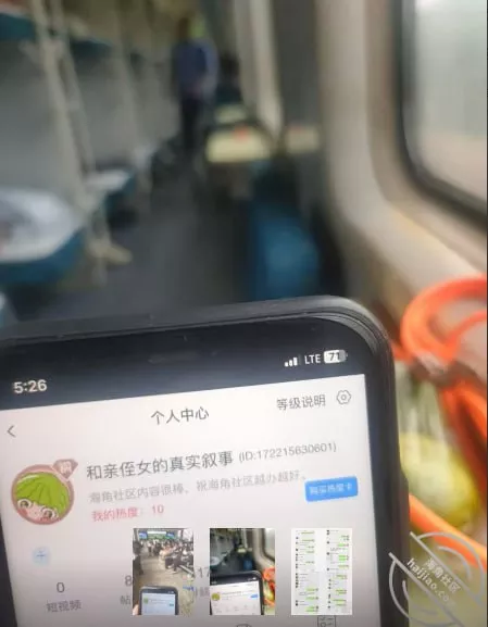 回来的火车上拍的,发给侄女看,没想到侄女还吃醋了。昨天晚上和侄女聊天,侄女说怎么半天不回她信息,刚给你婶子在办事,侄女发语音跟我说很不开心,小女孩的心思不知道天天在想啥。