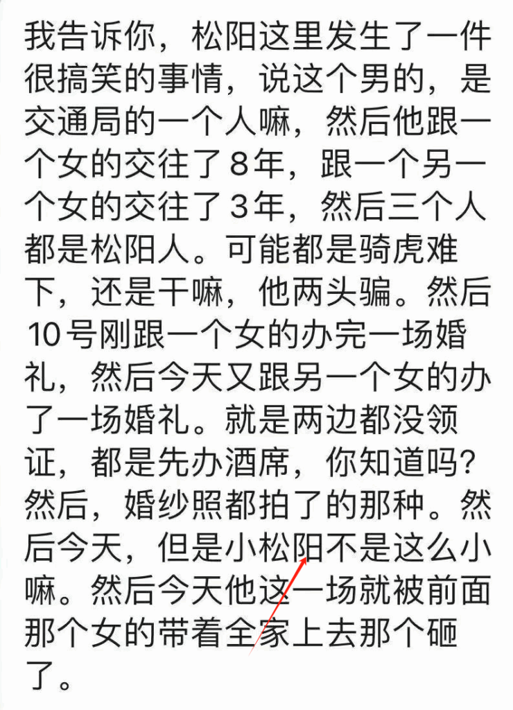 松阳县发生了一起引人关注的二重奏事件。一位月收入3000元的男子,竟同时与两位女友交往。眼看事情即将暴露,他陷入了骑虎难下的境地,居然想出了一个极为荒唐的主意——想要与两人同时结婚。他计划先与一位举行婚礼,随后再与另一位举行酒席,但却不打算领结婚证,看来他对法律也略有了解。