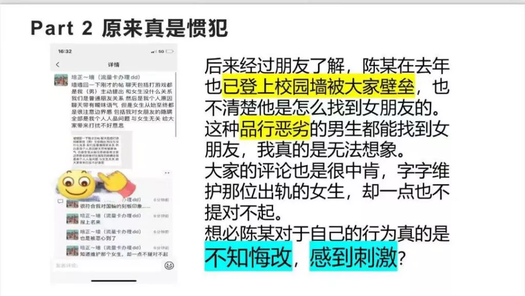 又一位时间管理大师,广东培正艺术学院除了一位软饭男,总是吃着碗里的想着锅里的,已经有了女朋友,还喜欢导出拈花惹草,被几位受害者戳穿后,那就只能是PPT曝光了。