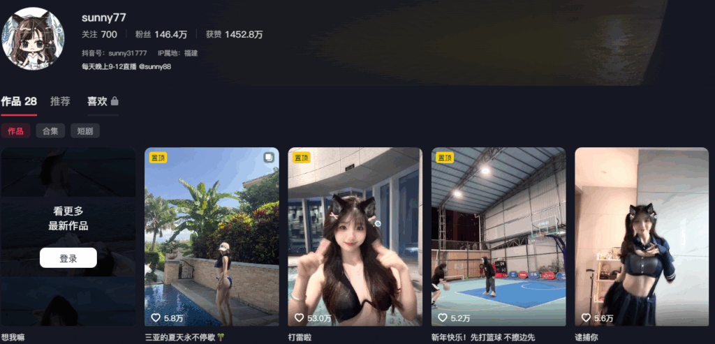 146万粉丝抖音擦边女网红sunny77纯欲风反差福利小福利