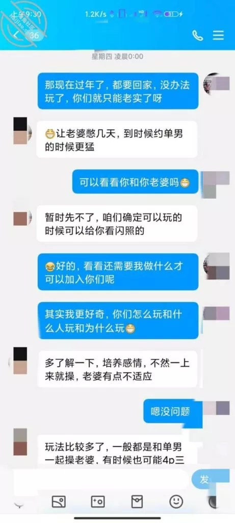 上次发帖,根据兄弟的提示成功加上好友,但是没经验不知道怎么说,有个兄弟私聊说自己做过单男,教了我开场白,说我是本地的一个单男,介绍自己的身高体重发照片,表示一些尊重,但是我发的照片是我朋友的照片,他们没见过 哈哈哈。看说话的语气估计是妹夫,妹夫说他们入圈三年了,应该是19年就已经在玩这个了,那时候小外甥才出生,应该是生完小外甥之后玩的,之后妹妹也打过两次胎,不会是被别人弄大了肚子吧。妹夫承认了他有绿帽癖好,妹妹也喜欢被人Cao,看来妹妹这些年真的没少经历,前几天回家呆了两天,换下来一条内裤 ,