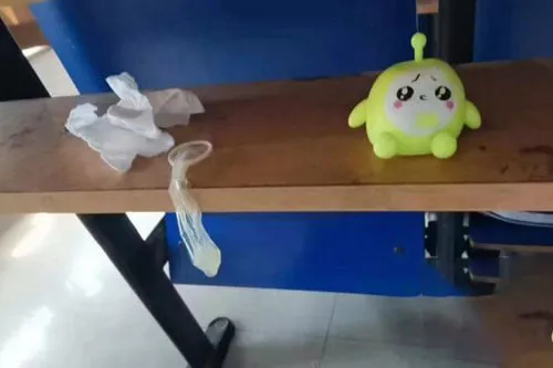 石家庄学院学生情侣教师doi将避孕套丢在课桌里被同学发现后曝光
