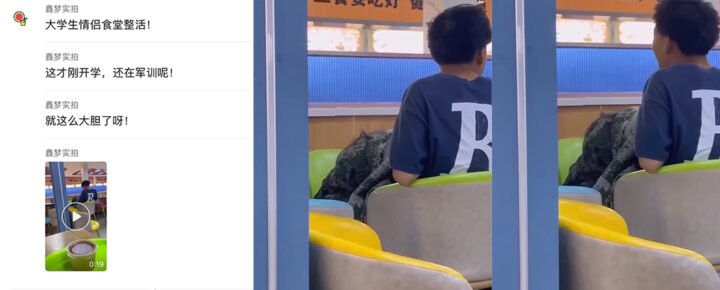 军训结束要放松大学食堂内新生情侣野战刚开学胆子就这么大