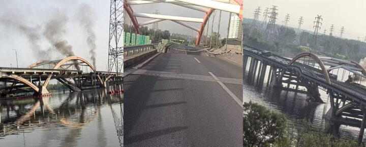 网传北京顺义区彩虹桥起火坍塌桥面整段崩毁交通瘫痪